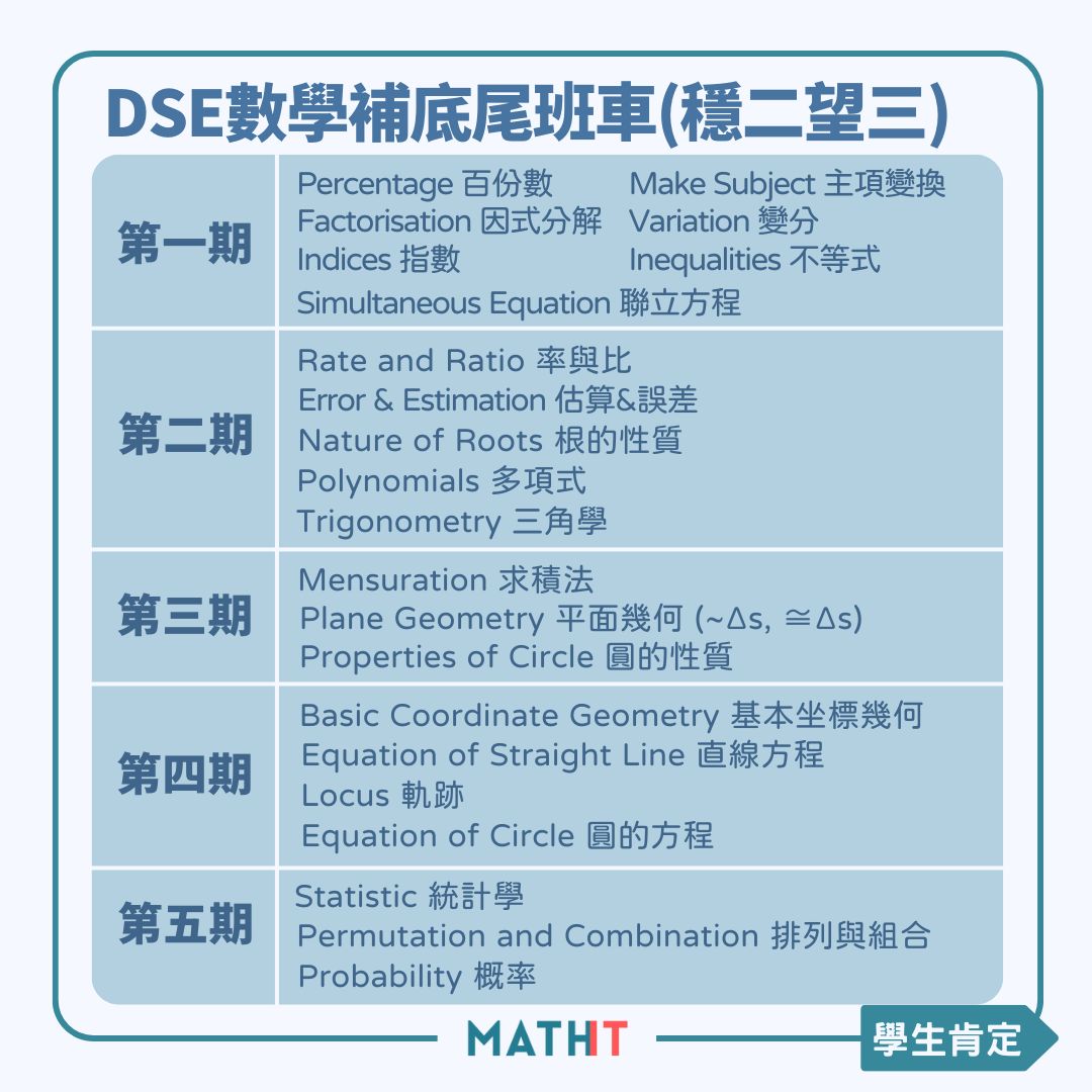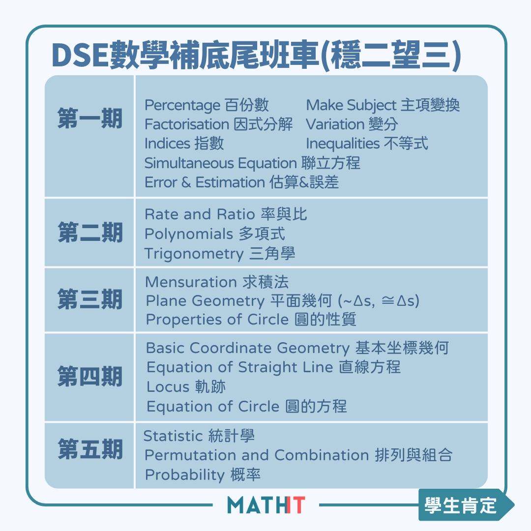 數學補底尾班車專為數學程度弱,未能穩陣合格同學而設。